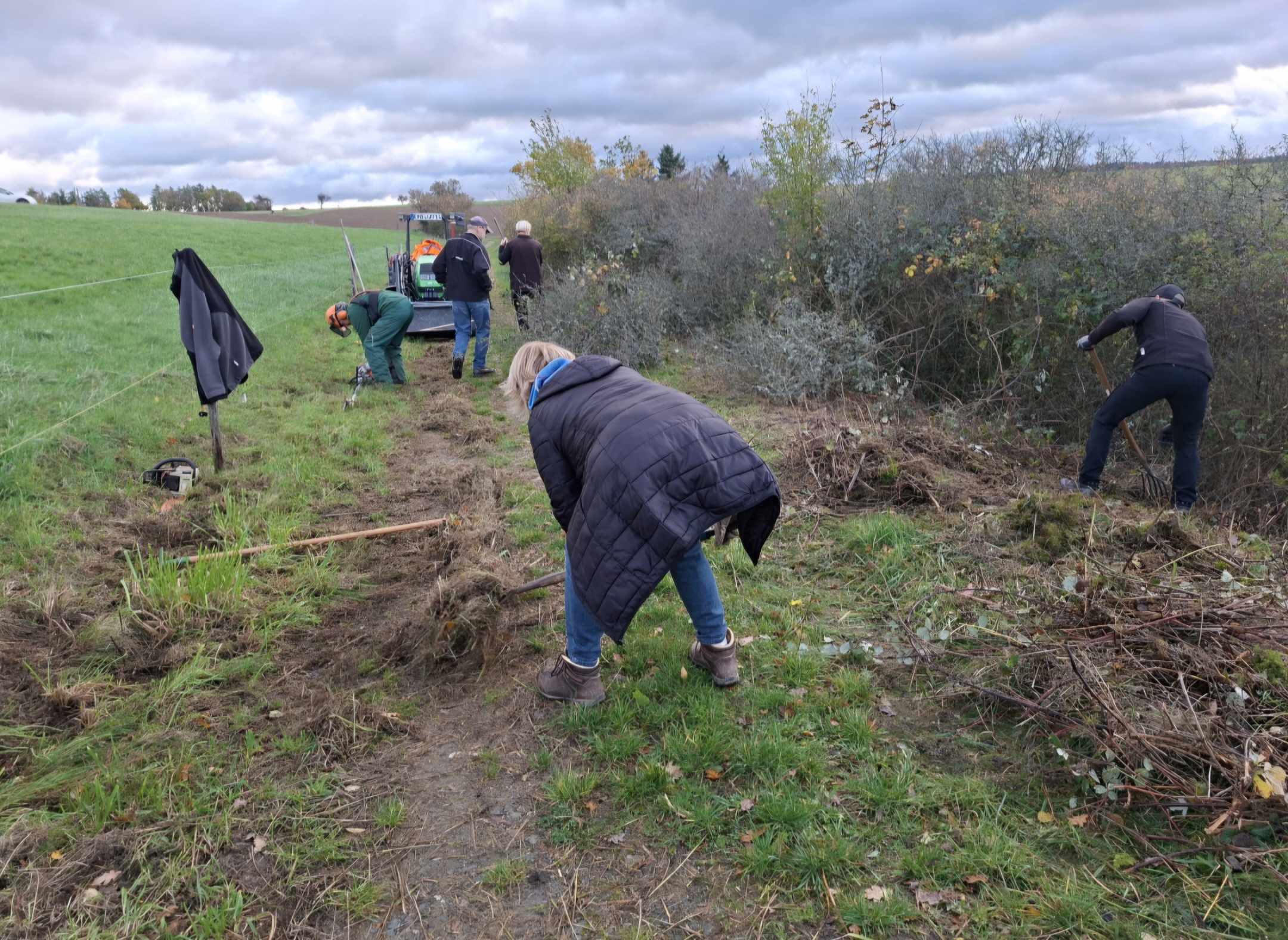 Kurz vor Wintereinbruch trafen sich Mitglieder der Schmetterlingsinitiative Dörscheid zusammen mit dem Biotopbetreuer Martin Unfricht von der SGD Nord um die Vorbereitungen für das nächste Blühjahr zu treffen. Auf einer Breite von 2,5 m wurde eine zugewachsene Wegböschung von Schlehen, Brombeeren und anderen Gehölzen befreit. Hier und an anderen Wegabschnitten rund um Dörscheid sollen in den kommenden Jahren bunte Blühstreifen entstehen. Sie sollen Schmetterlinge von der „Dörscheider Heide“ an den Dorfrand und in den Schmetterlingspark locken. Dafür wurde im Vorfeld von den Mitgliedern der Initiative unter Beratung von Dr. Axel Schmidt und Martin Unfricht das ganze Jahr über Samen von heimischen Schmetterlingspflanzen gesammelt. Sie sollen im kommenden Jahr dort ausgesät werden und sind der Anfang des Projektes „Wir holen die Schmetterlinge ins Dorf”